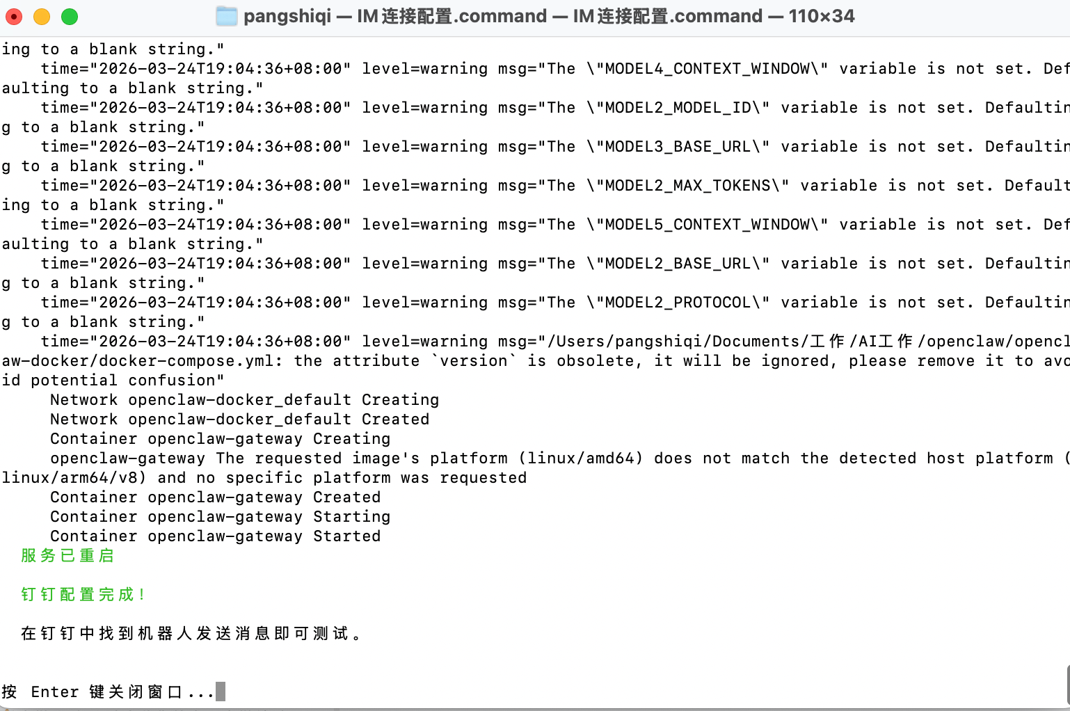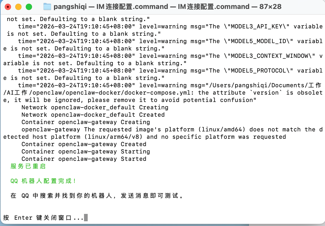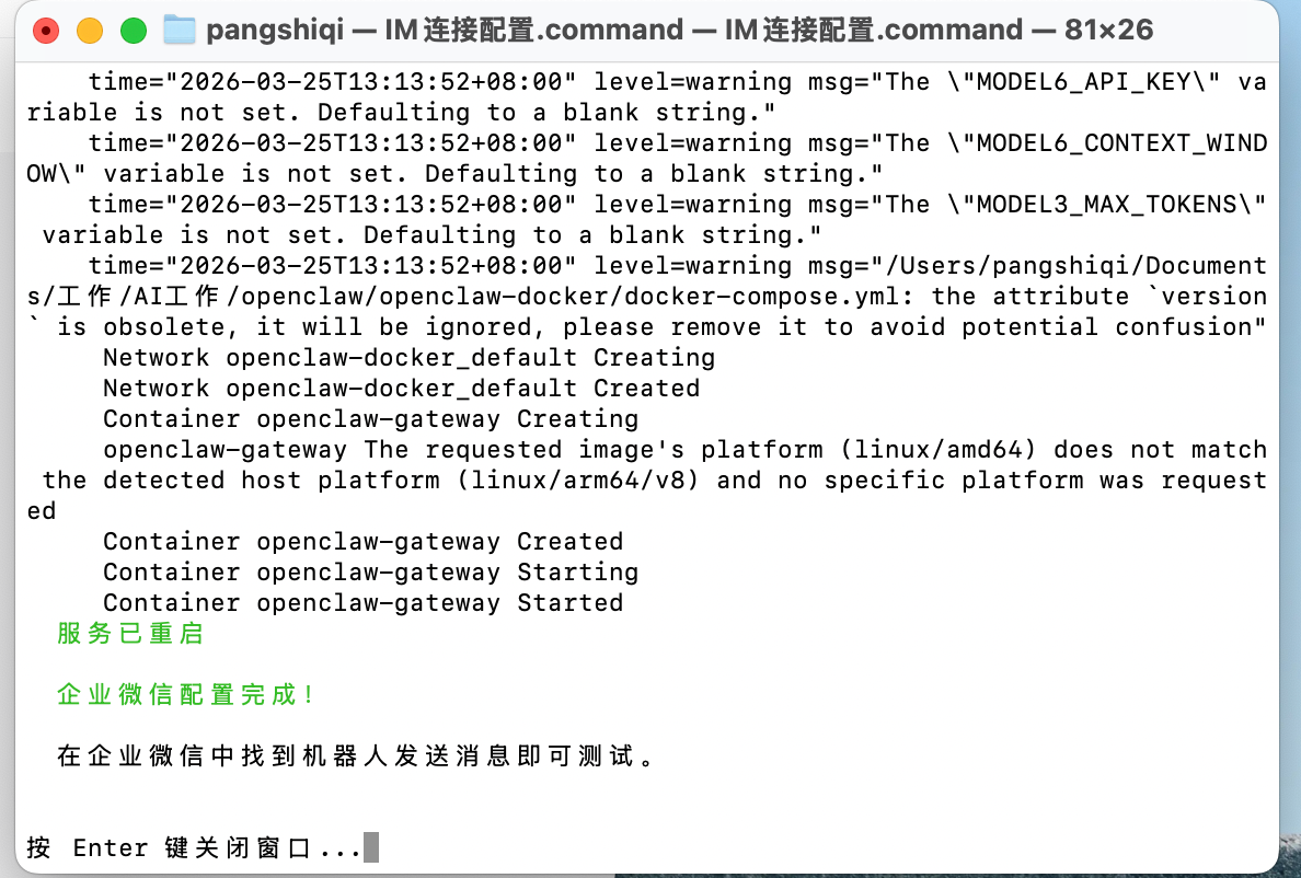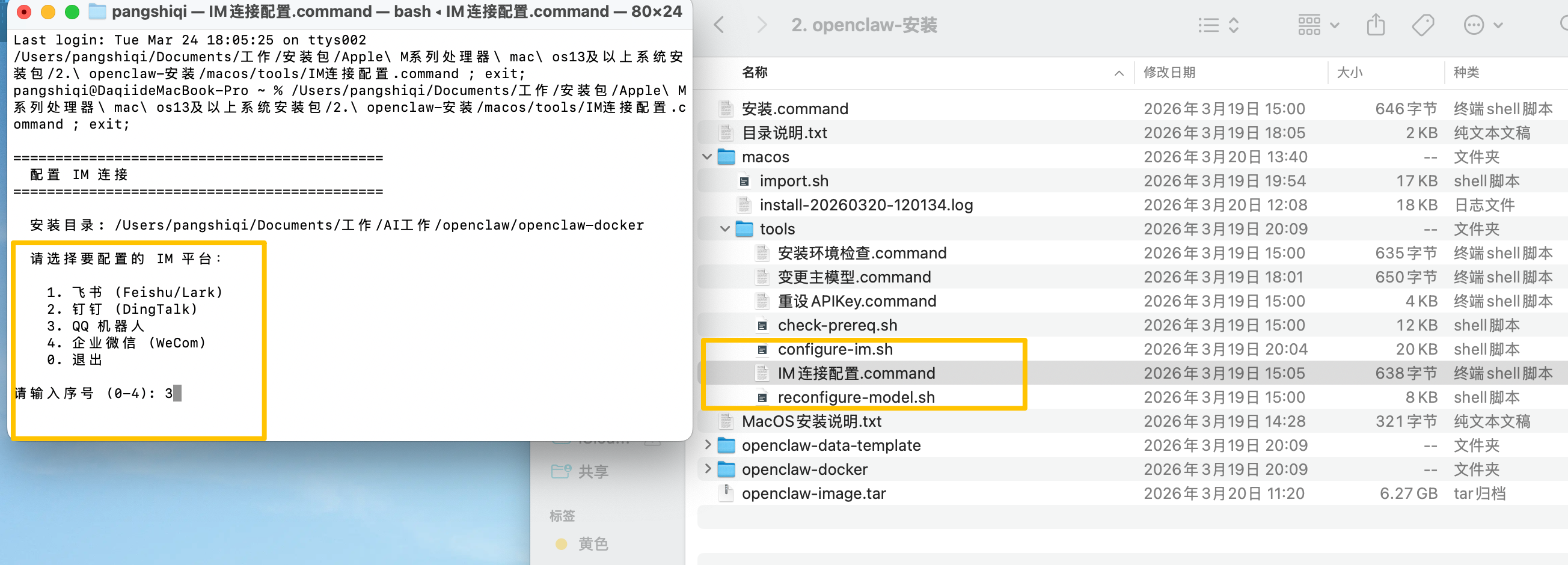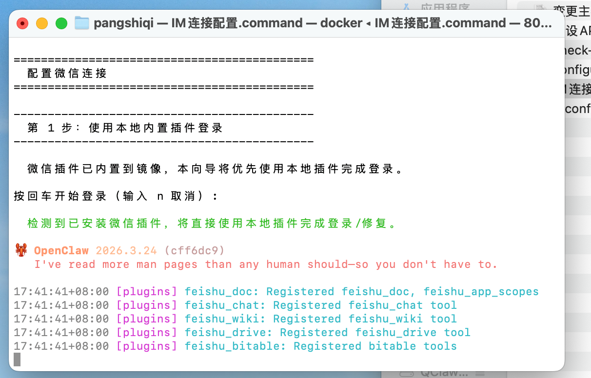 Mac容器版OpenClaw -配置飞书、钉钉、QQ、企业微信官方插件指引