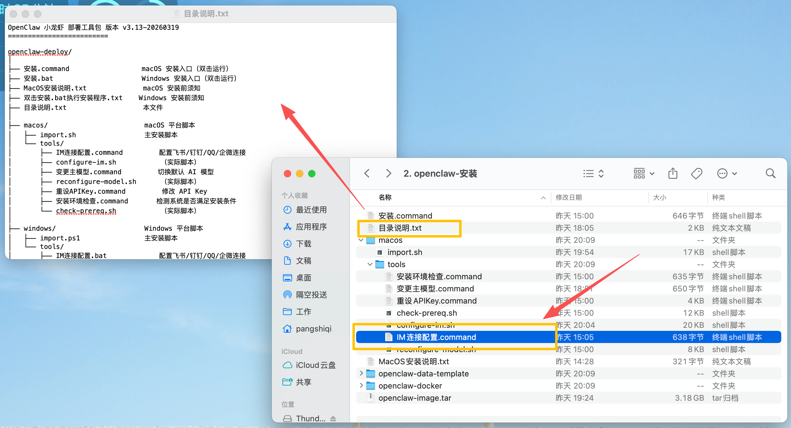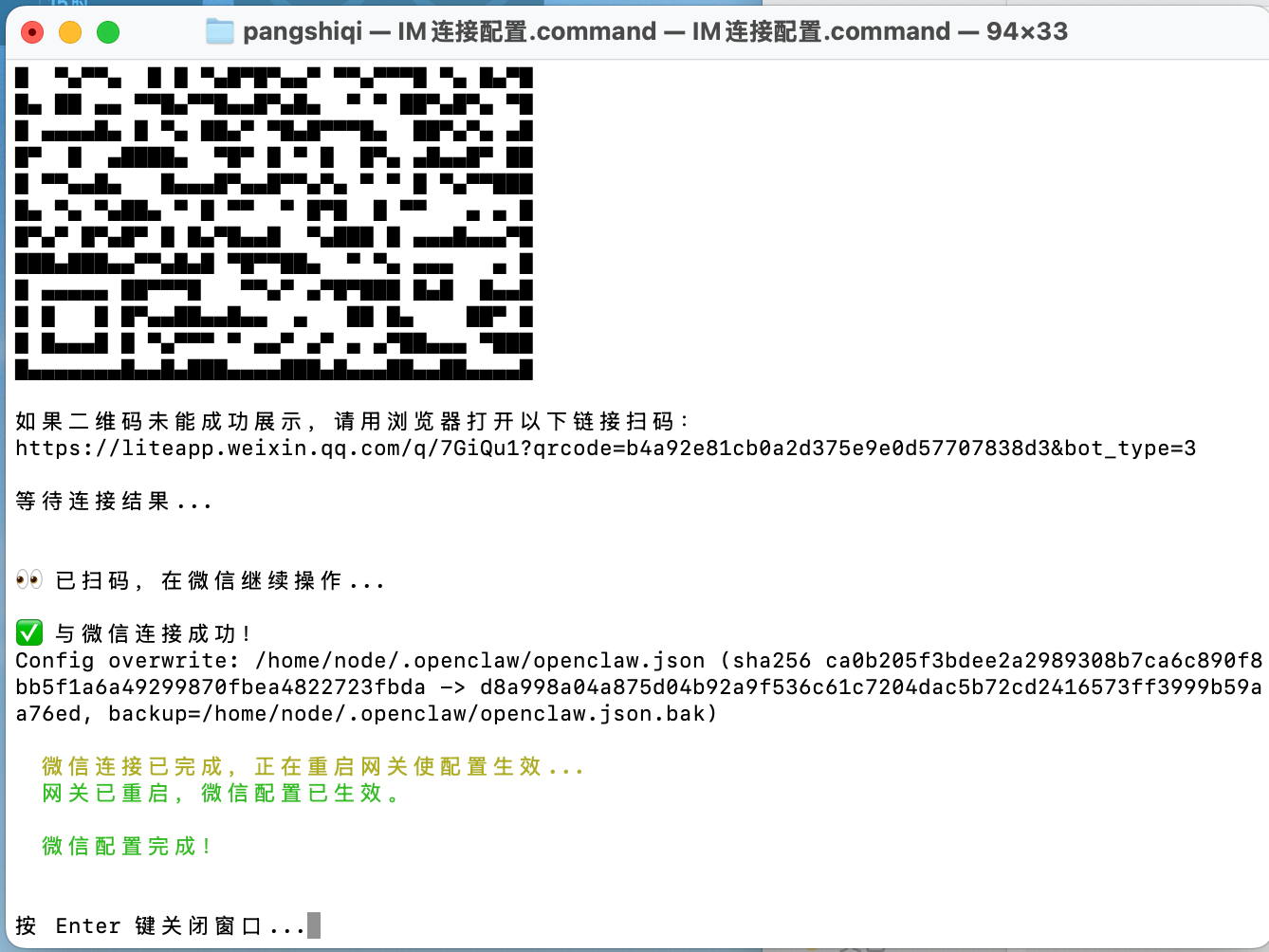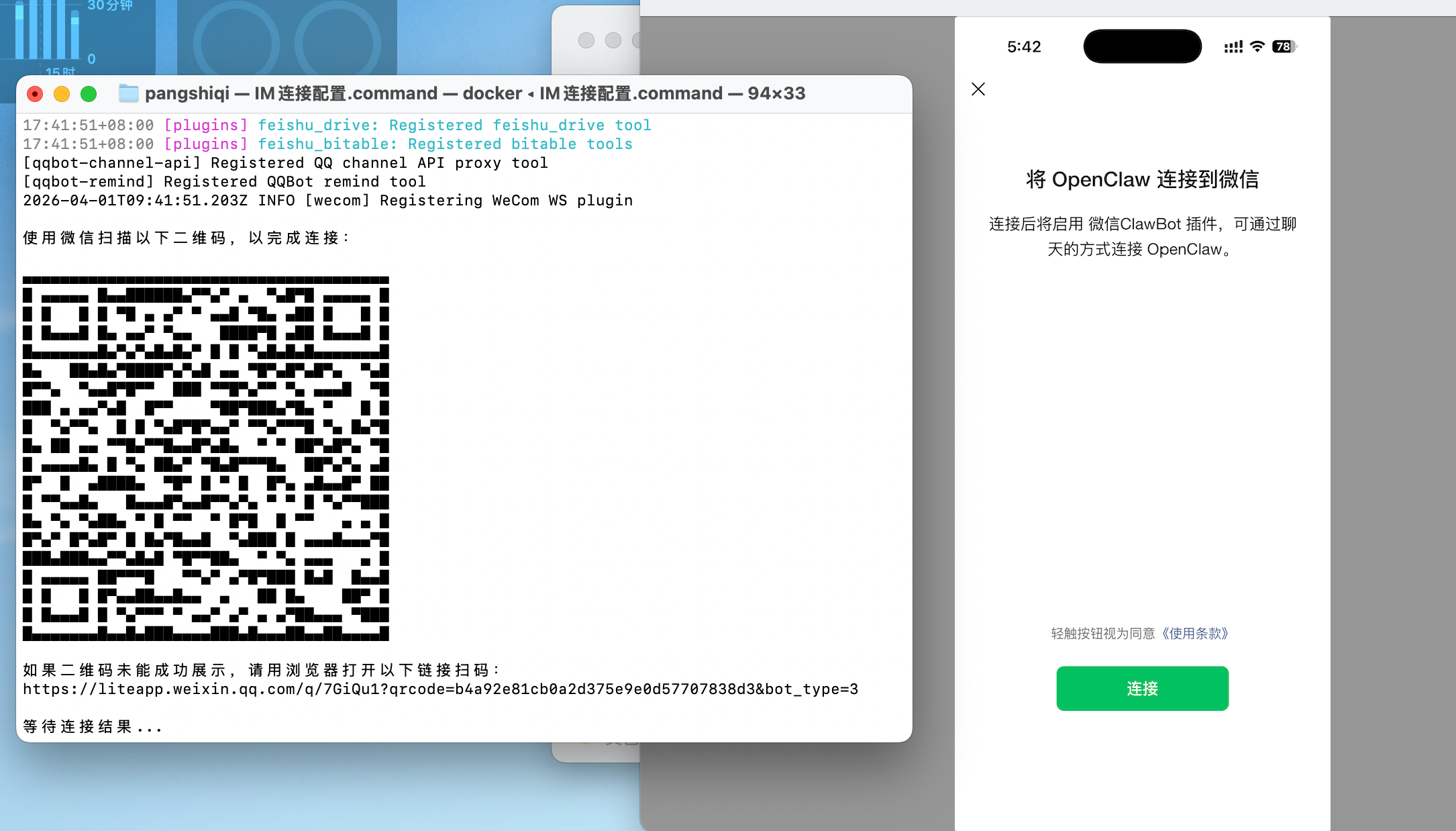 IM连接配置 」脚本(该脚本支持统一配置飞书、企业微信、QQ、钉钉)。