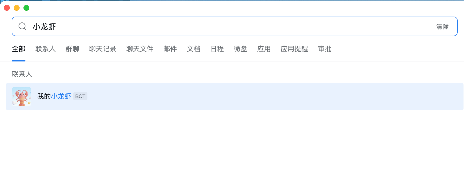 - 在企业微信客户端中,搜索名称,进入对话界面。