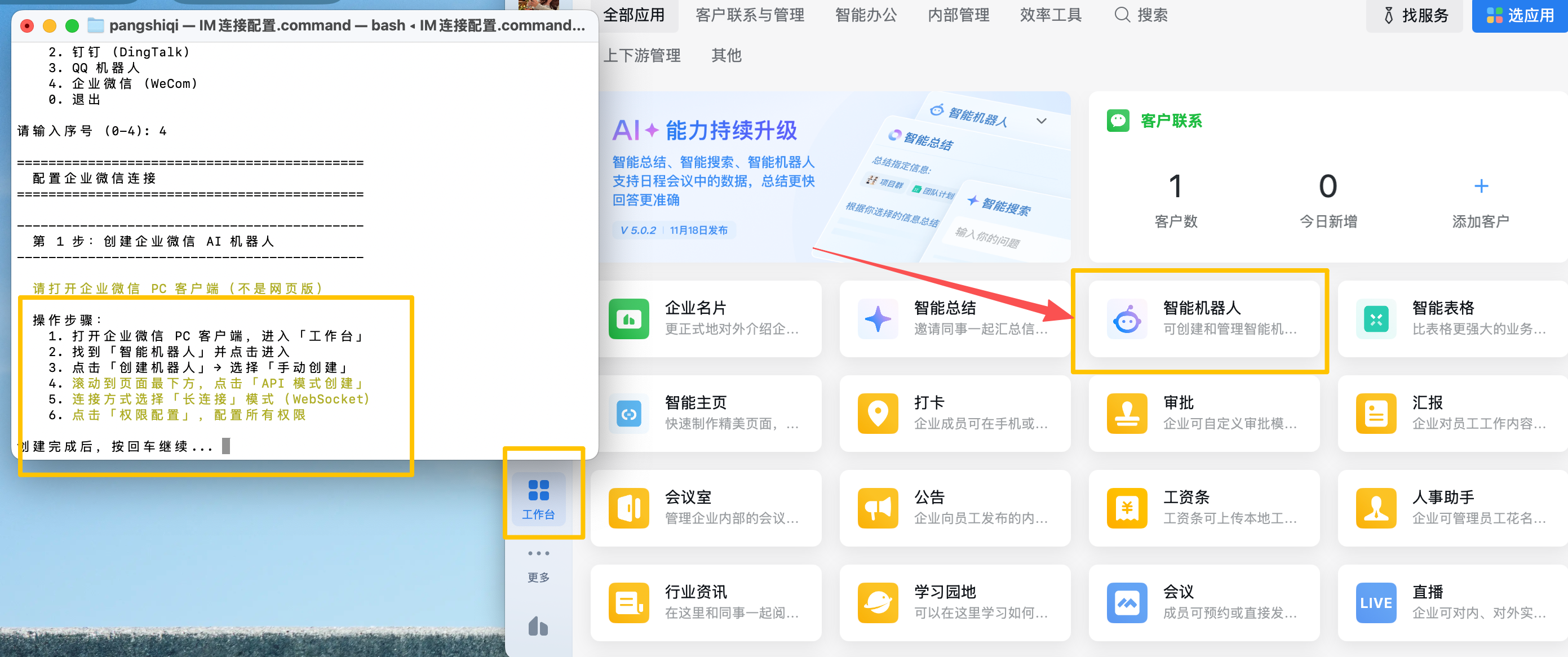 脚本启动后,在终端中输入对应数字选择要配置的 IM 平台:输入 "4 "并回车,选择企业微信。