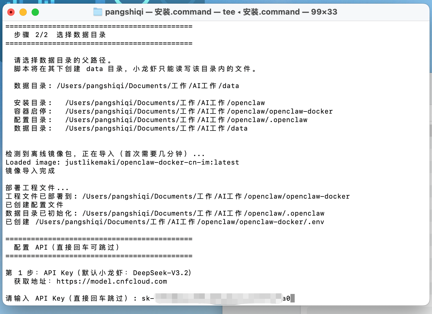 - 配置 API Key:当终端提示输入 API Key 时,请将您事先保存好的(以